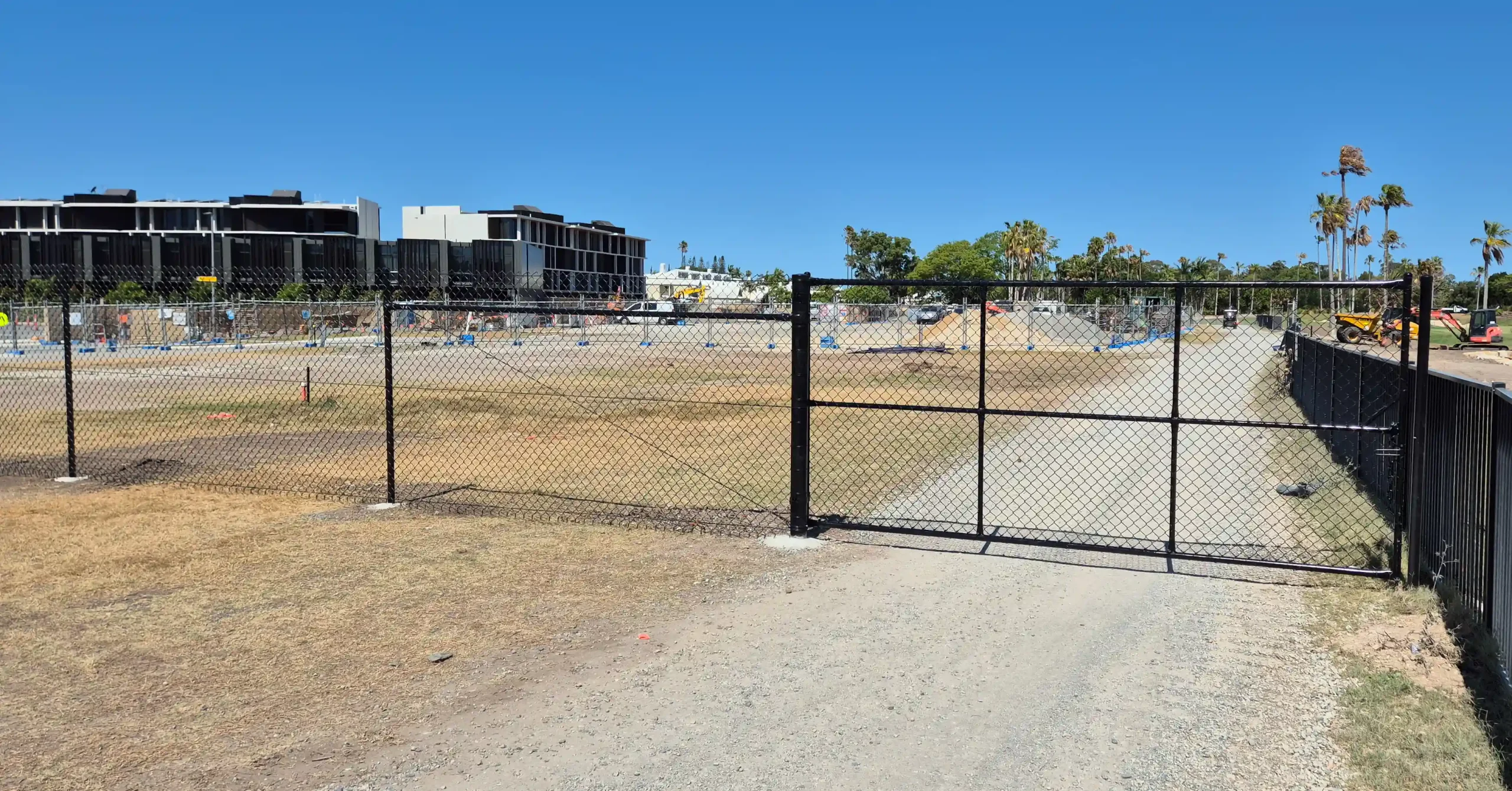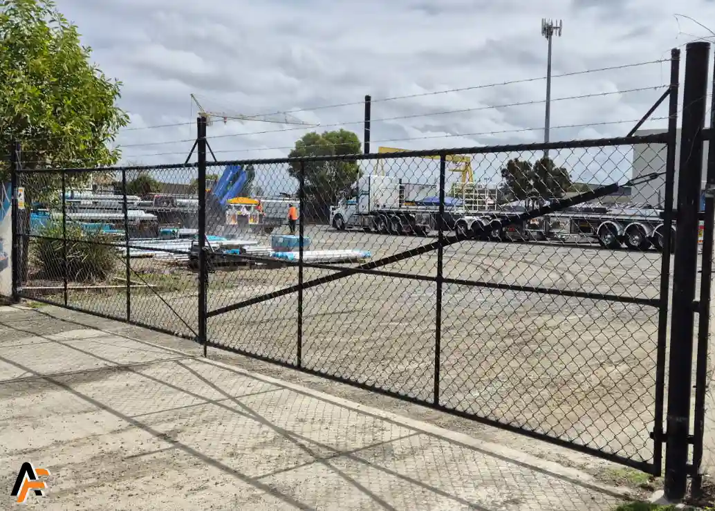 Commercial fencing with secure chain wire gate providing durable perimeter protection for business properties on the Gold Coast.
