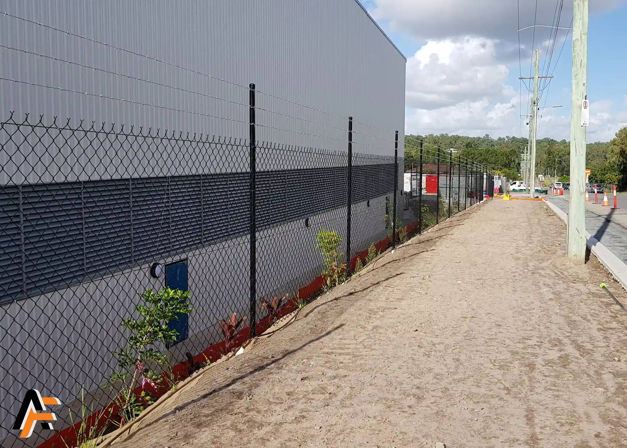 Chain Link Fencing used as perimeter fencing in Yatala with a black finish.