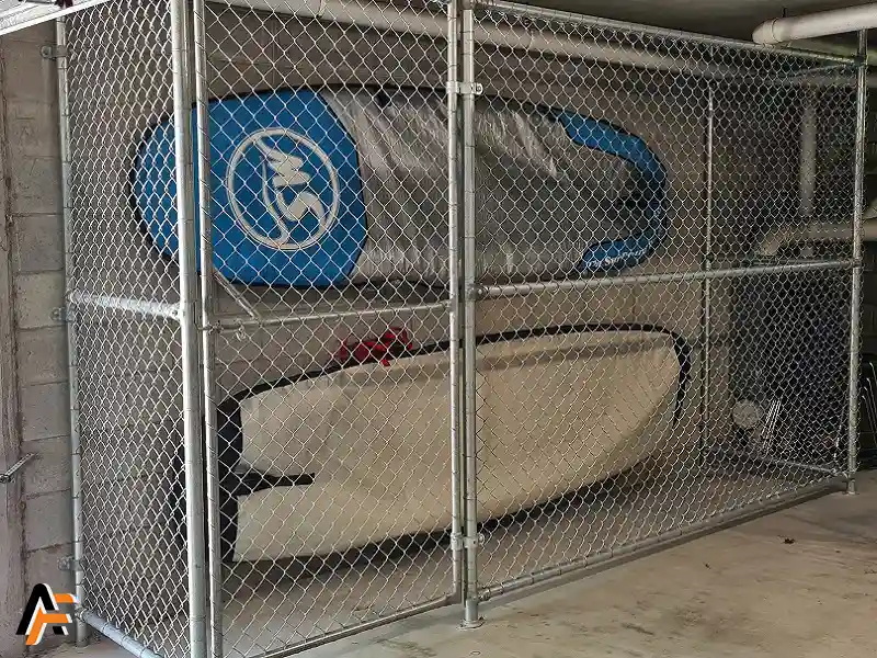 Storage cage made from chain link installed on the gold coast to store surf boards